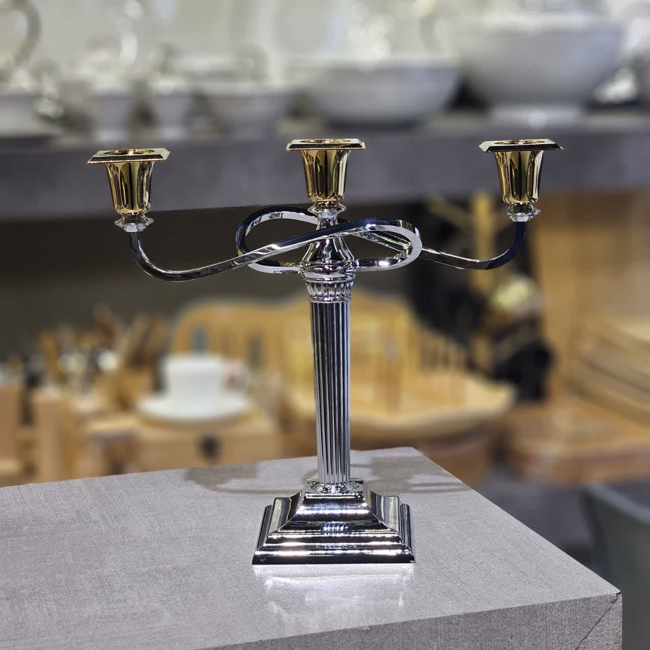 جا شمعی سه شاخه پایه سیلور